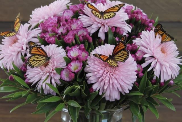 • El equilibrio es la clave: Cree un arreglo armonioso equilibrando el tamaño, el color y la ubicación de las flores y mariposas.