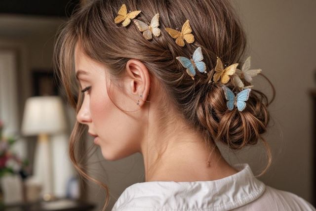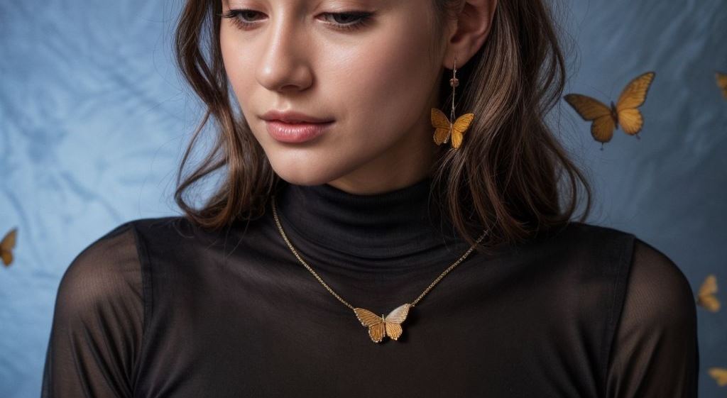 - Atuendos casuales: Combina un sencillo collar con colgante de mariposa con jeans y una blusa informal para darle un toque de elegancia cotidiana.