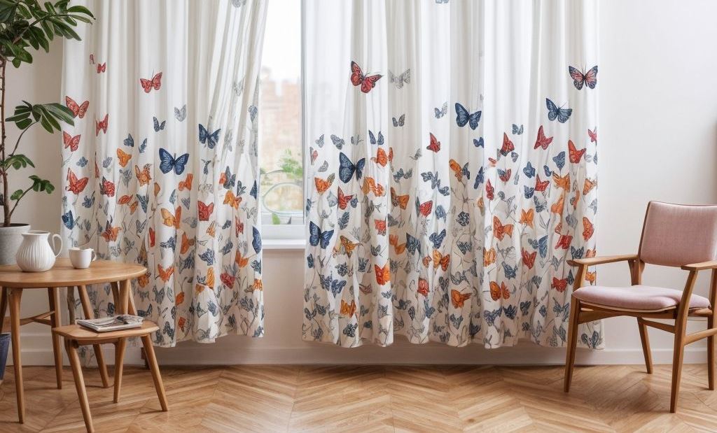 Estas cortinas, adornadas con delicados motivos de mariposas, ofrecen una forma única de iluminar cualquier habitación y al mismo tiempo aportan un toque del aire libre al interior.