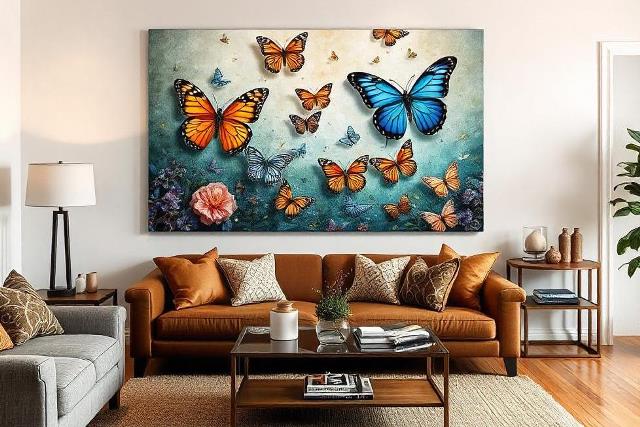 Las cuadros de mariposas pueden ser el punto focal de una habitación o parte de la pared de una galería temática. Considere colocarlos en áreas donde se puedan apreciar fácilmente, como salas de estar, dormitorios o pasillos.