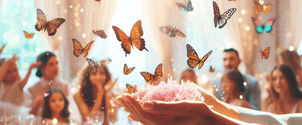 Incorporar mariposas voladoras a tu celebración es una forma única y encantadora de realzar el evento, ya sea una fiesta de cumpleaños, una boda o cualquier ocasión especial.