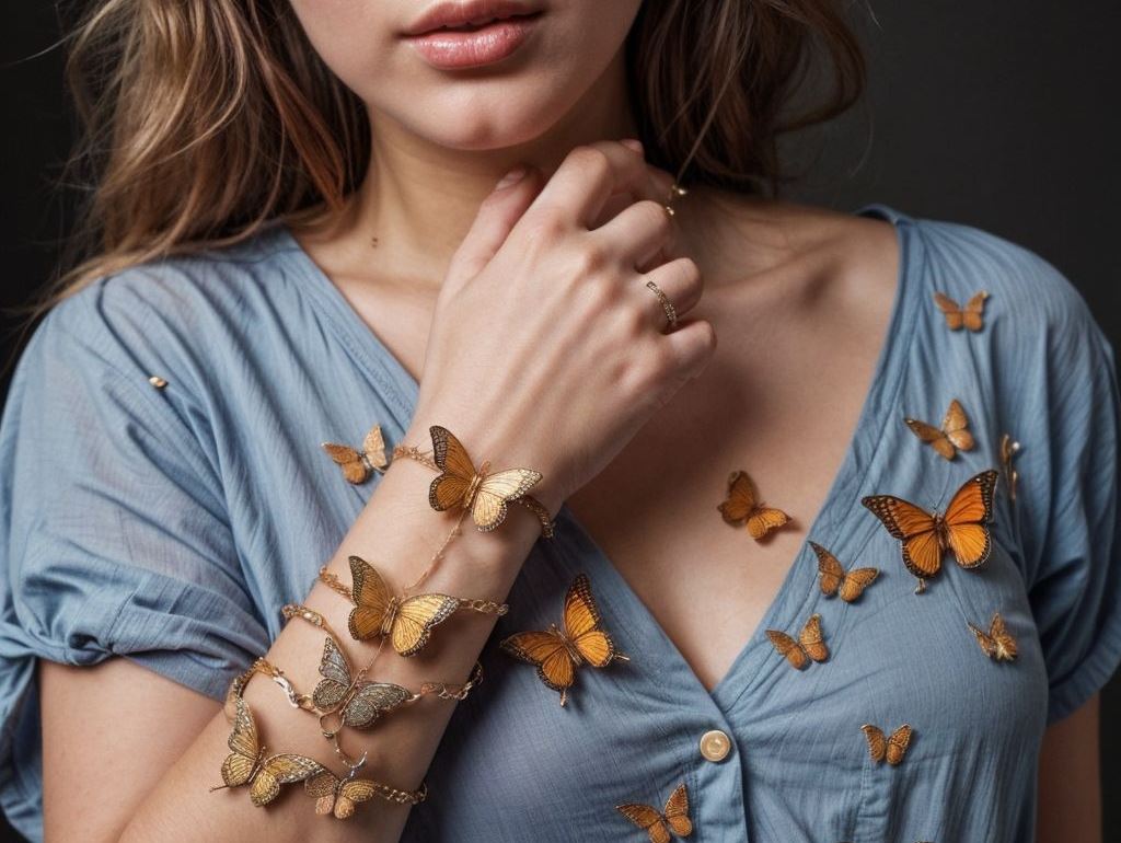 - Ropa casual: Combina una sencilla pulsera con dijes de mariposa con jeans y una blusa para darle un toque de elegancia cotidiana.